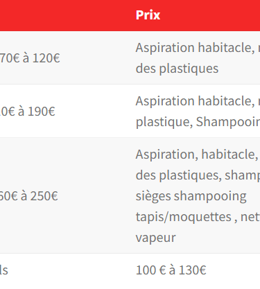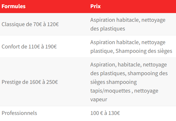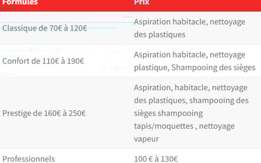 Des prix clairs pour un nettoyage soigné et complet.